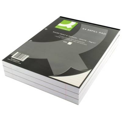 - This quality bulk refill pad contains 400 pages of 60gsm paper for all your general note taking needs. The front cover protects your notes from dust and damage and the pages are feint ruled and have a margin for neatness. The pad is headbound and two-hole punched, allowing you to easily remove your notes and file them in a lever arch file or ring binder. This pack contains 5 x A4 pads.