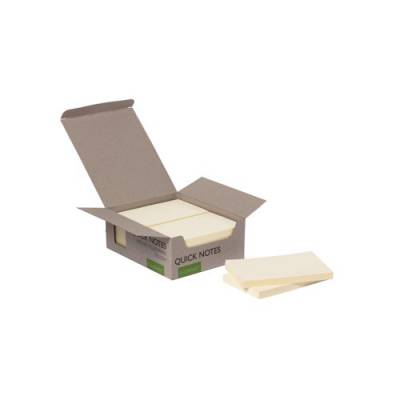 - Ideal for making notes or leaving messages and reminders at work, these Q-Connect Recycled Notes have a strong adhesive that will stick to most surfaces and remove cleanly. Each pad of repositionable notes contains 100 sheets and measures 127 x 76mm. This pack contains 12 yellow pads.