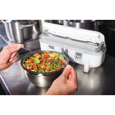 - Ideal for professional catering, the Wrapmaster 3000 Dispenser provides neat and tangle free dispensing of foil or cling film. The dispenser is safe and easy to use, with an enclosed cutting mechanism, which grips hold of the film or foil ready for the next use. It is hygienic and dishwasher safe, and will take Wrapmaster refills up to 30cm in width. The dispenser measures W400 x D175 x H160mm.