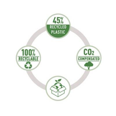 | Packaging: 100% recycled and recyclable |