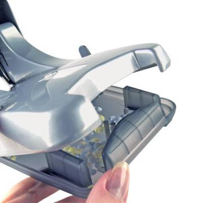 This heavy duty Rapesco Zero-65 hole punch features an extended, single piece handle for easily punching up to 65 sheets of 80gsm paper. The hole punch also features a personalisation window, adjustable paper guide, rubberised flip open confetti tray and a handle lock down switch for convenient storage. This pack contains 1 silver hole punch.
