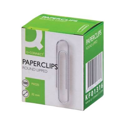 - A simple way to collate papers, these quality 32mm Q-Conect Lipped Paperclips are ideal for general office and home use. The strong, durable wire construction is designed for frequent and long lasting use. This bulk pack contains 10 packs of 100 paperclips in plastic hanging boxes.