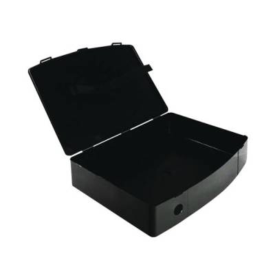 This Q-Connect polypropylene box file provides a simple way to store your documents and loose papers neatly and securely. Featuring a durable polypropylene construction, these files are ideal for storage on shelves and in archive boxes. With a sturdy internal spring clip to hold sheets in place and a curved front for easy access, this box file is a great aid for sorting and archiving. This black box file can hold both A4 and foolscap documents.