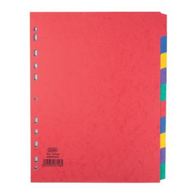 - These bright Elba subject dividers are made from multicoloured, heavyweight pressboard for long lasting use. The dividers are multipunched for filing in standard ring binders and lever arch files and the extra wide A4 size keeps them visible when filed for quick and easy referencing. This pack contains a 10-part set of dividers.