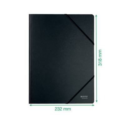 From the Leitz Recycle range, an eye-catching, premium quality card folder with elastic bands. One of the most used types of folder for document protection and transportation. With corner elastic bands to prevent documents from sliding out. Made from 100% recycled card, climate neutral, 100% recyclable and with Blue Angel environmental certification. This robust and practical elastic folder, made from 430gsm card perfectly complements other products from the Leitz Recycle range and is made to last. Modern and contemporary green stationery that will look great at home and the office. With this eco friendly Recycle range from Leitz you can both improve your office environment and the environment of our planet. Pack contains 10 black folders. Buy any 2 Leitz Recycle products and ACCO will plant 30 trees, log your purchase on www.leitz.com to activate.