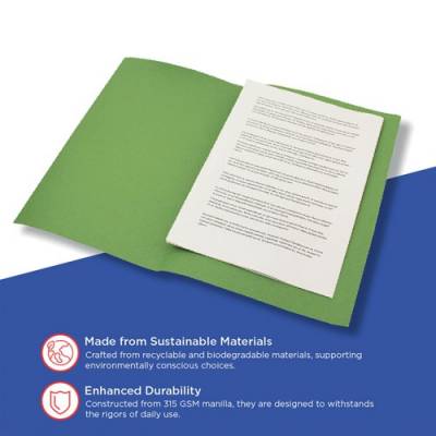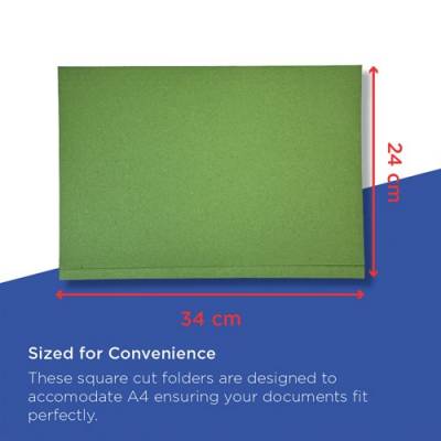 - These Exacompta Guildhall square cut folders are made from durable 315gsm manilla and are ideal for desktop organisation or suspension filing. The foolscap folders can hold up to 100 sheets of 80gsm A4 or foolscap paper and measure 349 x 242mm. Ideal for colour coordinated filing, this pack contains 100 green square cut folders.