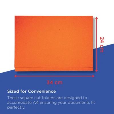 - These Exacompta Guildhall square cut folders are made from durable 315gsm manilla and are ideal for desktop organisation or suspension filing. The foolscap folders can hold up to 100 sheets of 80gsm A4 or foolscap paper and measure 349 x 242mm. Ideal for colour coordinated filing, this pack contains 100 orange square cut folders.