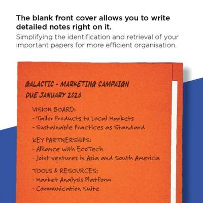 These Exacompta Guildhall square cut folders are made from durable 315gsm manilla and are ideal for desktop organisation or suspension filing. The foolscap folders can hold up to 100 sheets of 80gsm A4 or foolscap paper and measure 349 x 242mm. Ideal for colour coordinated filing, this pack contains 100 orange square cut folders.