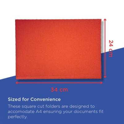 - These Exacompta Guildhall square cut folders are made from durable 315gsm manilla and are ideal for desktop organisation or suspension filing. The foolscap folders can hold up to 100 sheets of 80gsm A4 or foolscap paper and measure 349 x 242mm. Ideal for colour coordinated filing, this pack contains 100 red square cut folders.