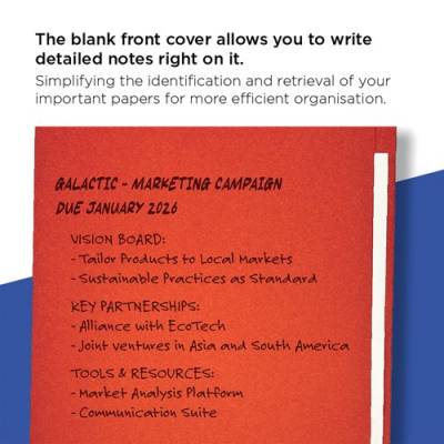 These Exacompta Guildhall square cut folders are made from durable 315gsm manilla and are ideal for desktop organisation or suspension filing. The foolscap folders can hold up to 100 sheets of 80gsm A4 or foolscap paper and measure 349 x 242mm. Ideal for colour coordinated filing, this pack contains 100 red square cut folders.