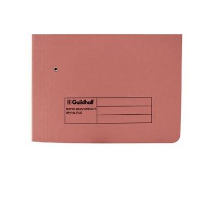 - This Exacompta Guildhall spiral pocket file is made from durable, heavyweight 420gsm manilla and can hold up to 380 sheets of 80gsm A4 or foolscap paper. The file features a secure spiral mechanism for punched papers. This pack contains 25 pink foolscap files, ideal for colour coordinated filing.