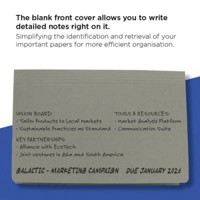 This Guildhall pocket wallet is made from premium quality 315gsm manilla and features a full flap for additional security of contents. The wallet has a 35mm gusset and can hold up to 350 sheets of A4 or foolscap paper. This pack contains 50 grey wallets, ideal for colour coordinated filing.