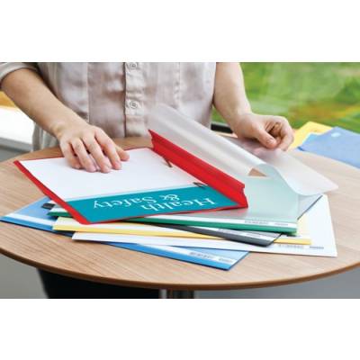 Ideal for filing and presentations, this Elba report file features a transparent cover for personalisation and a 2 prong, 8cm flat bar mechanism for A4 punched papers. Made from durable, wipe clean polypropylene, the file also features an opaque back cover for colour coded filing. This pack contains 50 black report files.