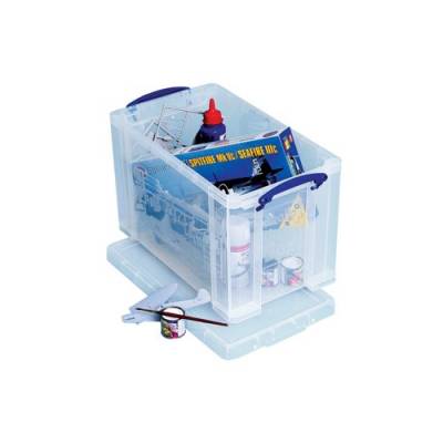 - This Really Useful storage box is suitable for foolscap suspension files for handy filing and storage in the office or at home. The box is made from durable polypropylene with a separate lid and integrated carry handles. Stackable and stable, this clear storage box has a 24 litre capacity and measures W465 x D270 x H290mm.