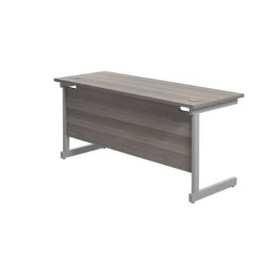Jemini Single Rectangular Desk 1800x600x730mm Grey Oak/Silver KF800772