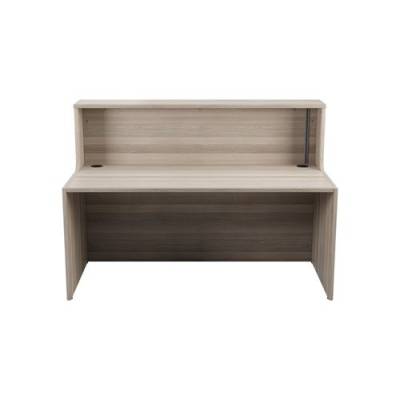 - With clean and elegant lines, this Jemini Reception Unit is ideal for use in a variety of reception areas. The modular design features a panel end construction incorporating a fixed riser unit. The unit has a sturdy 25mm thick desktop. This reception unit measures 1400x800x740mm and is finished in Grey Oak.