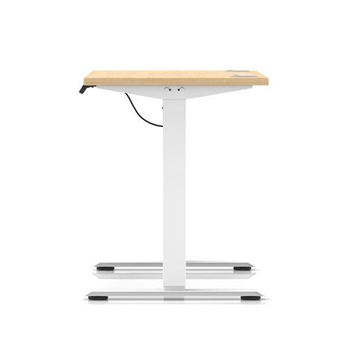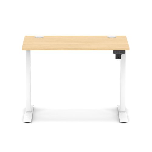 Air Lite 1000 x 600mm Height Adjustable Office Desk Maple Top Cable Ports White Leg