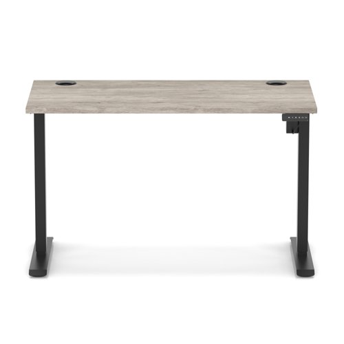 Air Lite 1200 x 600mm Height Adjustable Office Desk Grey Oak Top Cable Ports Black Leg