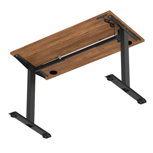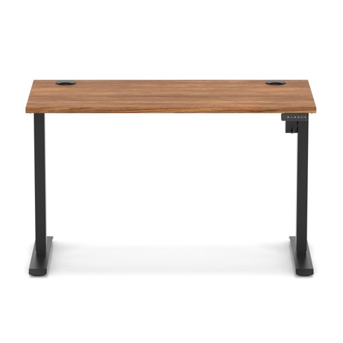 Air Lite 1200 x 600mm Height Adjustable Office Desk Walnut Top Cable Ports Black Leg