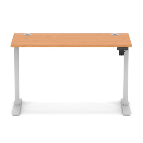 Air Lite 1200 x 600mm Height Adjustable Office Desk Beech Top Cable Ports Silver Leg