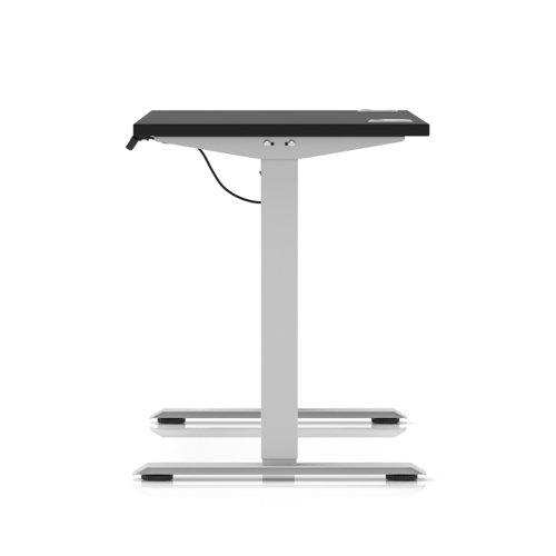 Air Lite 1200 x 600mm Height Adjustable Office Desk Black Top Cable Ports Silver Leg