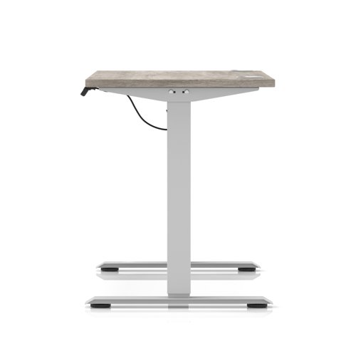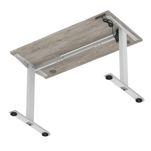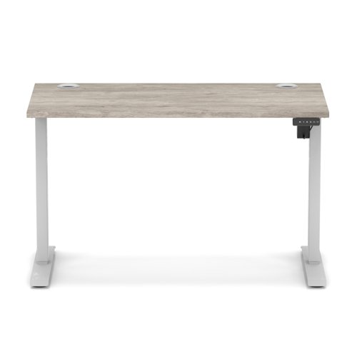 Air Lite 1200 x 600mm Height Adjustable Office Desk Grey Oak Top Cable Ports Silver Leg