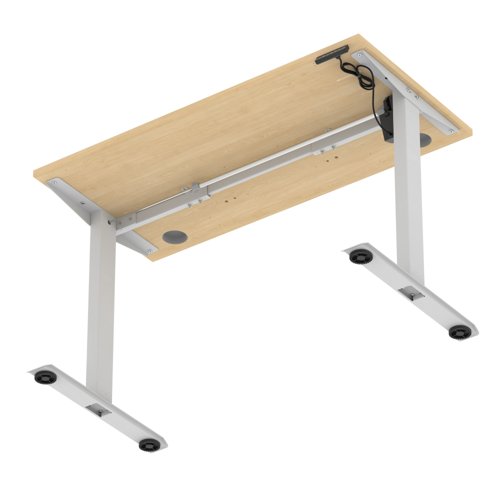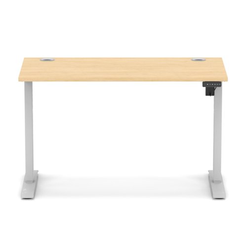 Air Lite 1200 x 600mm Height Adjustable Office Desk Maple Top Cable Ports Silver Leg