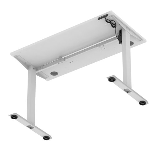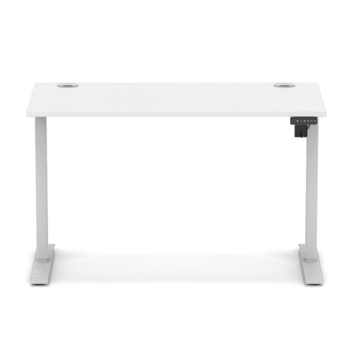 Air Lite 1200 x 600mm Height Adjustable Office Desk White Top Cable Ports Silver Leg