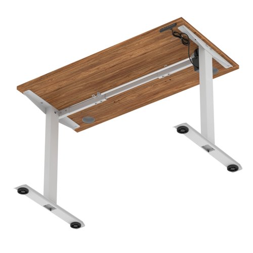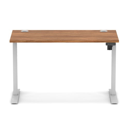 Air Lite 1200 x 600mm Height Adjustable Office Desk Walnut Top Cable Ports Silver Leg