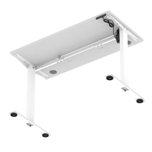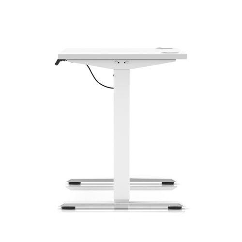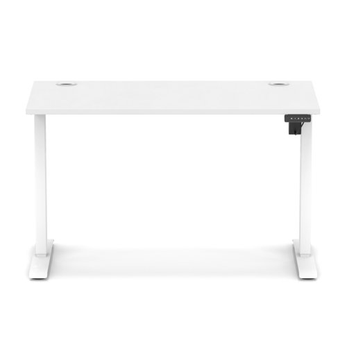 Air Lite 1200 x 600mm Height Adjustable Office Desk White Top Cable Ports White Leg