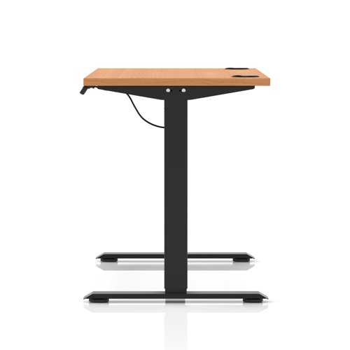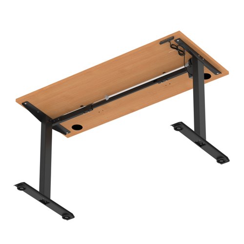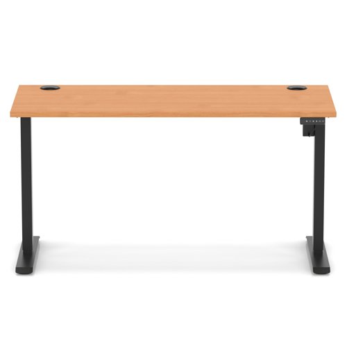 Air Lite 1400 x 600mm Height Adjustable Office Desk Beech Top Cable Ports Black Leg