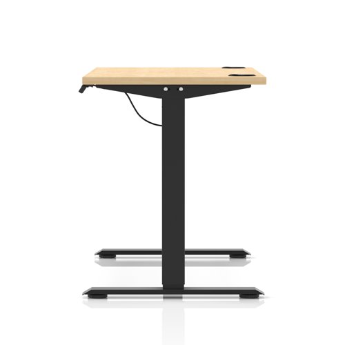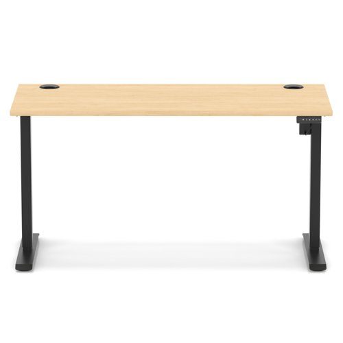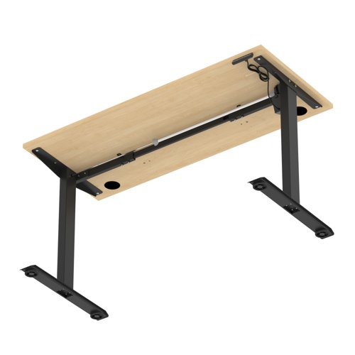 Air Lite 1400 x 600mm Height Adjustable Office Desk Maple Top Cable Ports Black Leg