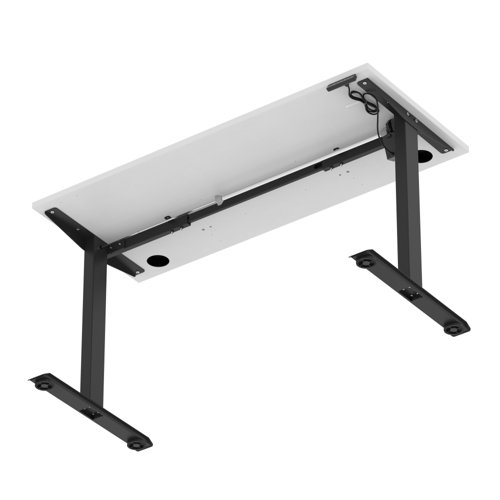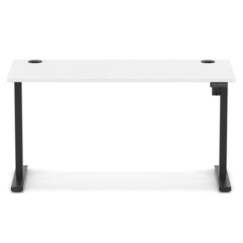 Air Lite 1400 x 600mm Height Adjustable Office Desk White Top Cable Ports Black Leg