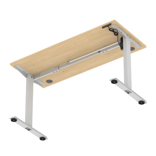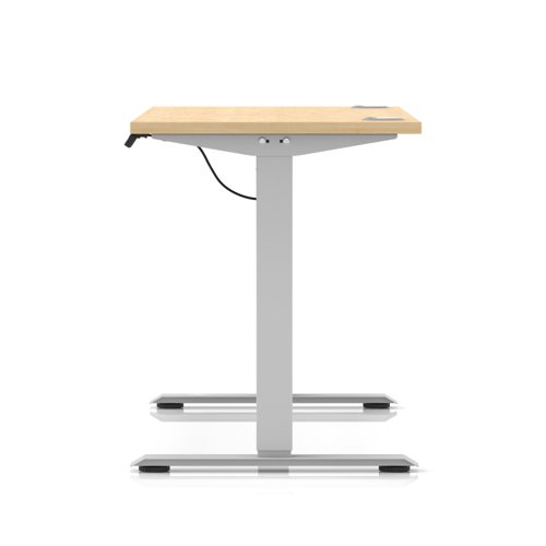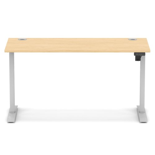Air Lite 1400 x 600mm Height Adjustable Office Desk Maple Top Cable Ports Silver Leg