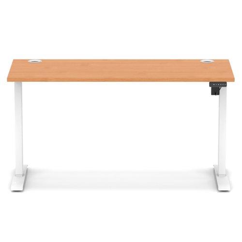 Air Lite 1400 x 600mm Height Adjustable Office Desk Beech Top Cable Ports White Leg