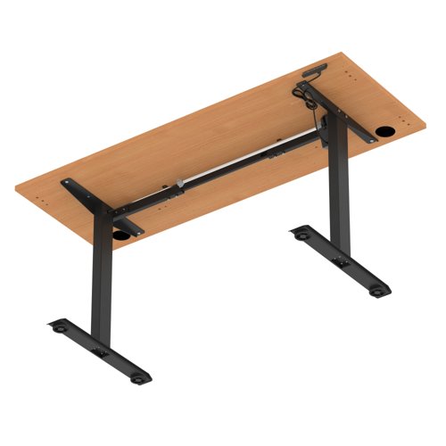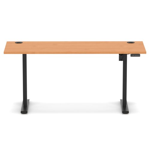 Air Lite 1600 x 600mm Height Adjustable Office Desk Beech Top Cable Ports Black Leg