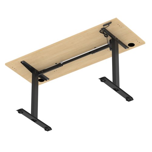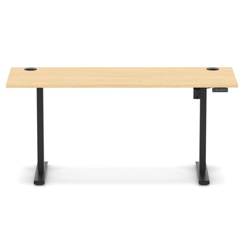 Air Lite 1600 x 600mm Height Adjustable Office Desk Maple Top Cable Ports Black Leg