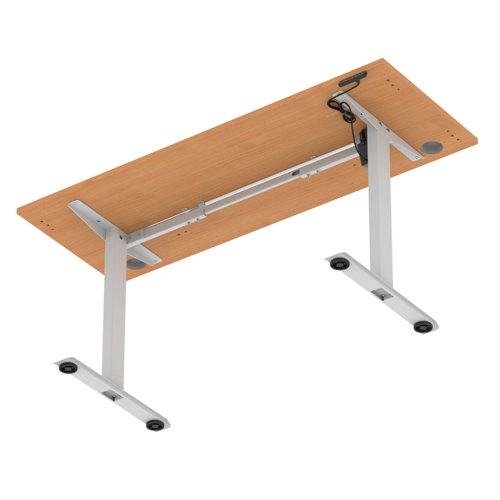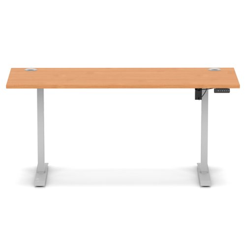 Air Lite 1600 x 600mm Height Adjustable Office Desk Beech Top Cable Ports Silver Leg