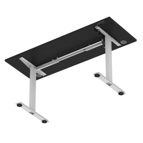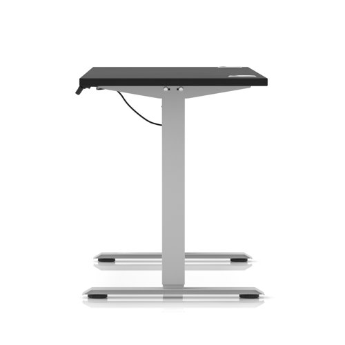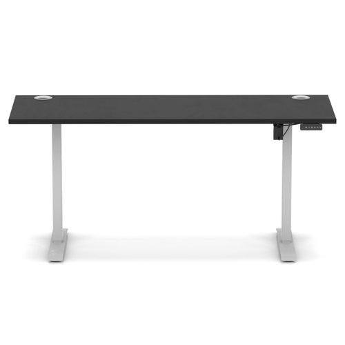 Air Lite 1600 x 600mm Height Adjustable Office Desk Black Top Cable Ports Silver Leg