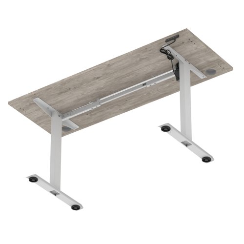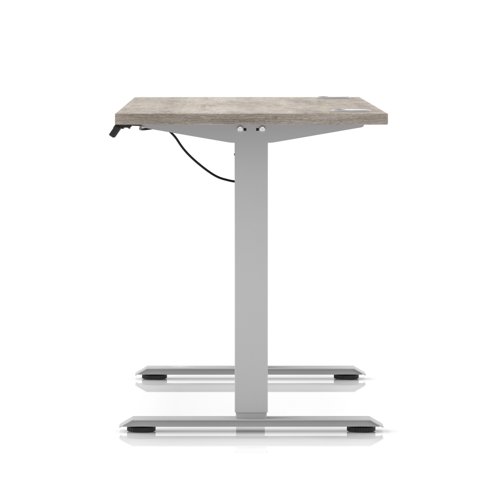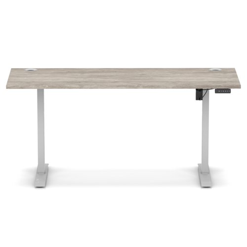 Air Lite 1600 x 600mm Height Adjustable Office Desk Grey Oak Top Cable Ports Silver Leg