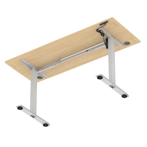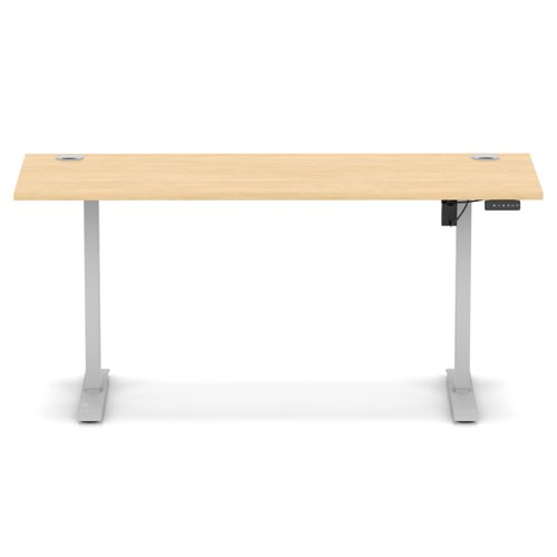 Air Lite 1600 x 600mm Height Adjustable Office Desk Maple Top Cable Ports Silver Leg