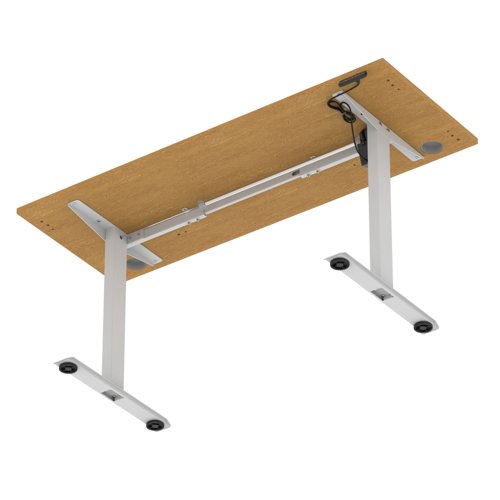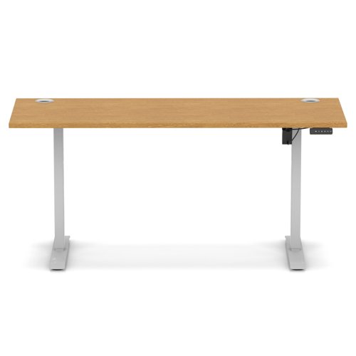 Air Lite 1600 x 600mm Height Adjustable Office Desk Oak Top Cable Ports Silver Leg