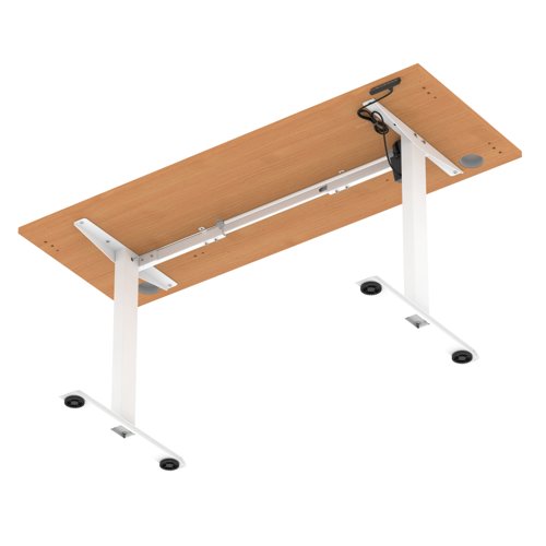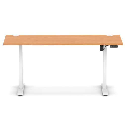 Air Lite 1600 x 600mm Height Adjustable Office Desk Beech Top Cable Ports White Leg