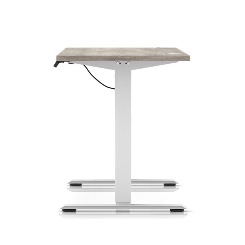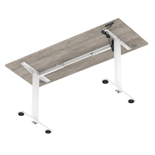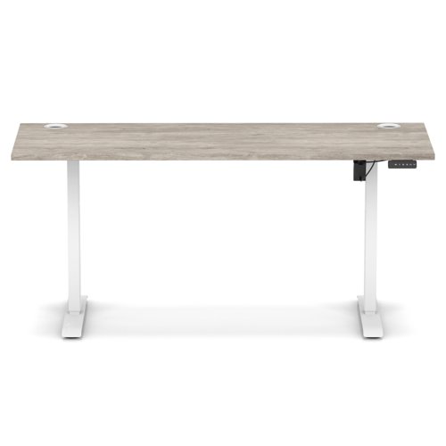Air Lite 1600 x 600mm Height Adjustable Office Desk Grey Oak Top Cable Ports White Leg