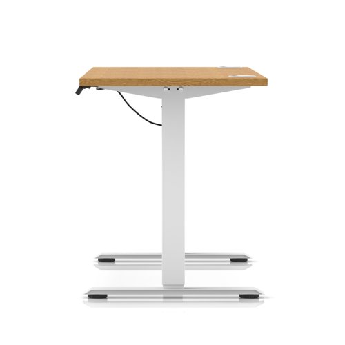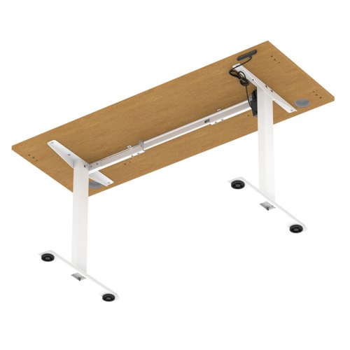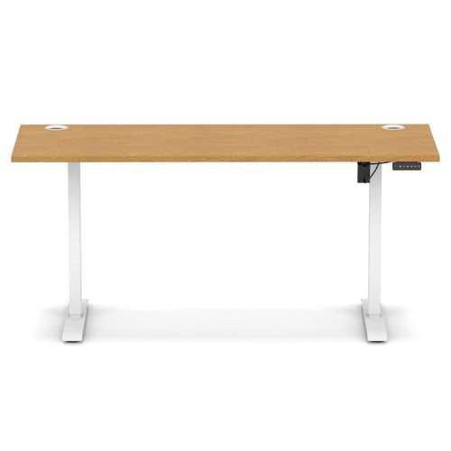 Air Lite 1600 x 600mm Height Adjustable Office Desk Oak Top Cable Ports White Leg