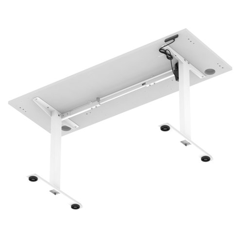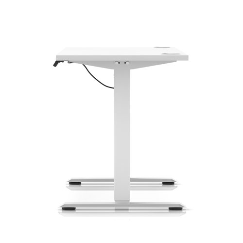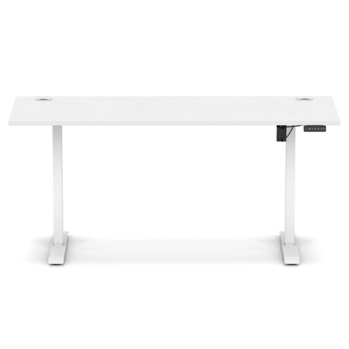Air Lite 1600 x 600mm Height Adjustable Office Desk White Top Cable Ports White Leg