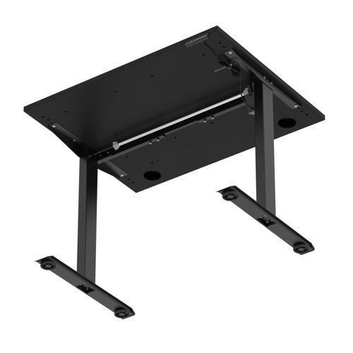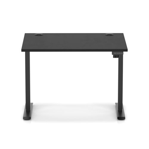 Air Lite 1000 x 800mm Height Adjustable Office Desk Black Top Cable Ports Black Leg