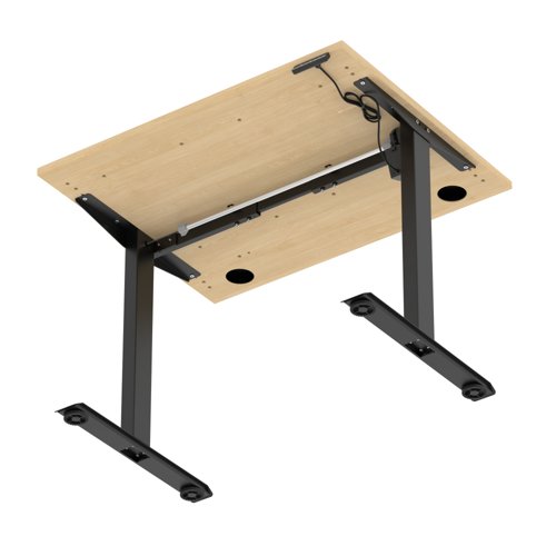 Air Lite 1000 x 800mm Height Adjustable Office Desk Maple Top Cable Ports Black Leg
