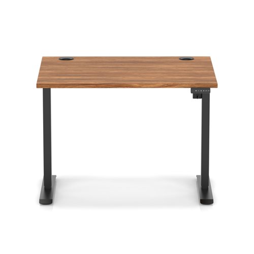 Air Lite 1000 x 800mm Height Adjustable Office Desk Walnut Top Cable Ports Black Leg