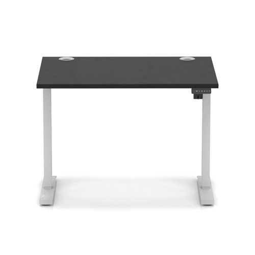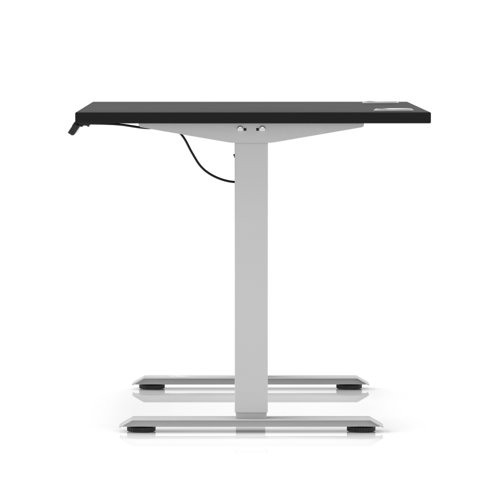 Air Lite 1000 x 800mm Height Adjustable Office Desk Black Top Cable Ports Silver Leg